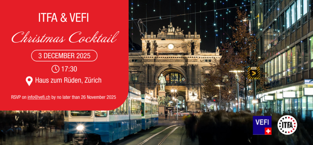 | ITFA and the Swiss Association for Trade and Forfaiting Services (VEFI) would like to invite you to the ITFA and VEFI Christmas Cocktail 2025. This event is being held in Zurich on Wednesday 3rd December 2025 from 17:30 hrs till 20:00 hrs Please note that this event is exclusively for ITFA and VEFI members, and access is restricted to confirmed guests only. So please RSVP on info@vefi.ch by sending the completed registration form. We truly appreciate should such emails reach us by latest Wednesday 26th November 2025. Please note that space is limited at the venue. Registrations will be accepted on a first come-first serve basis. We look forward to seeing you at this historic location at the river Limmat in the old town of Zurich! |